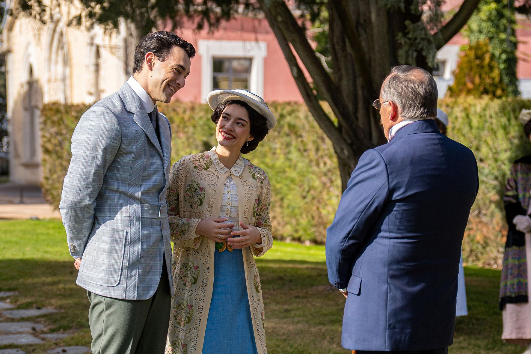 El atardecer que baña la finca de los De la Reina tiene una luz dorada que cae directamente sobre Andrés y Valentina, sugiriendo que hay una oportunidad de futuro entre ellos. Por el contrario, Begoña y Gabriel están más sumidos en las sombras del lado izquierdo. Esto visualiza la decadencia del matrimonio y cómo Begoña está atrapada en un ciclo de oscuridad del que intenta escapar.